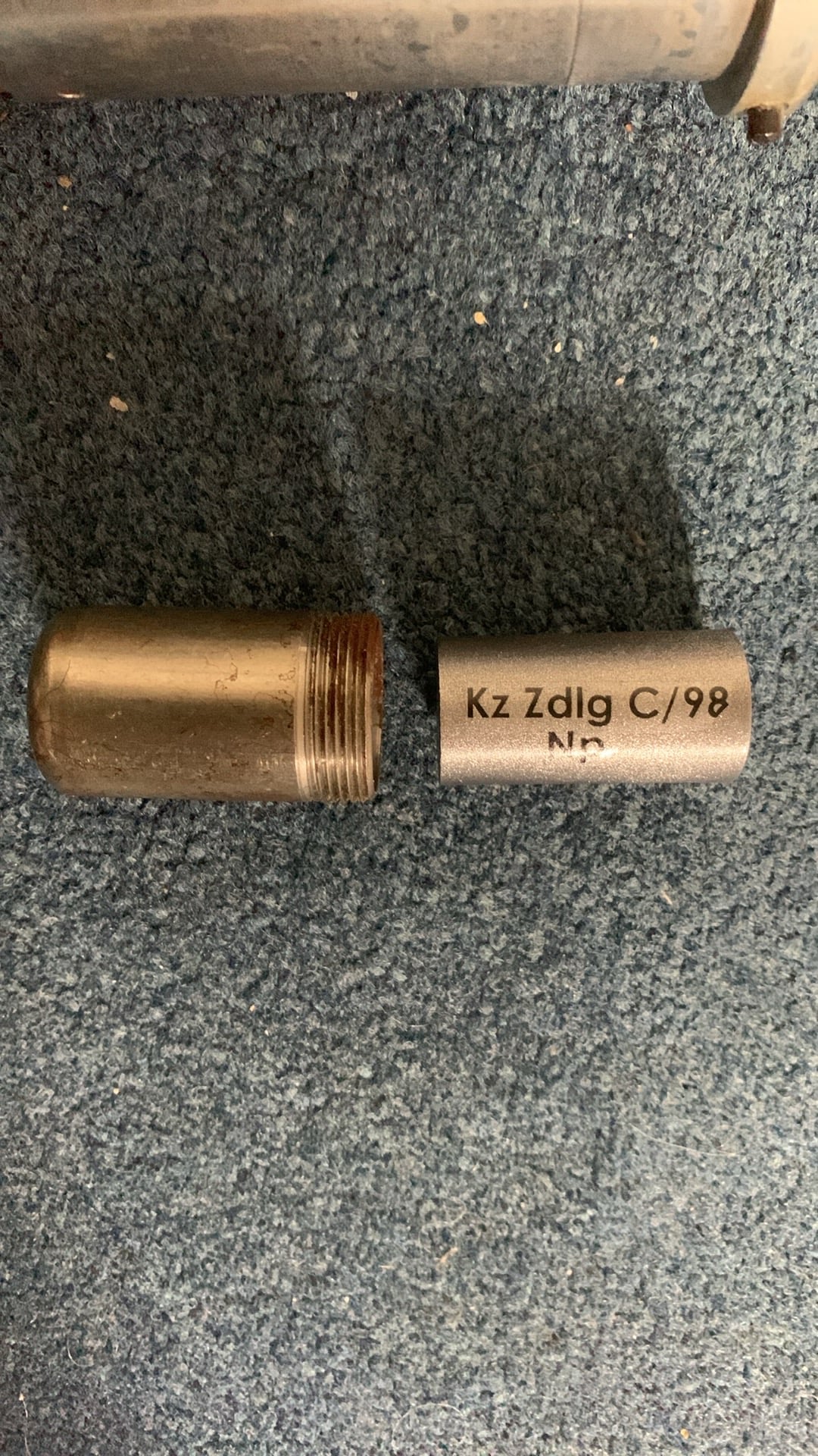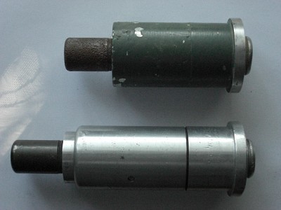 Below this is the shoulder, this may contain 3 fixing screws, its this location that the various markings are found,consisting of type of fuze ie EIAZ is an electrical impact type. Next is a ringed number NB this is very important for example a ringed (17) is a long delay clockwork fuze, it's this type of fuze that is longer in length, the clockwork portion screws into the base and is 142 mm long. then there is the Triagramme or manufacturers mark which can be 2 or 3 letters ie RhS is Rheinmetall (Sommerda ) Plant.