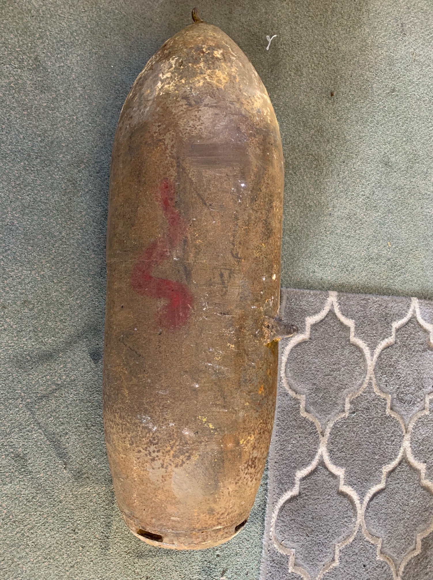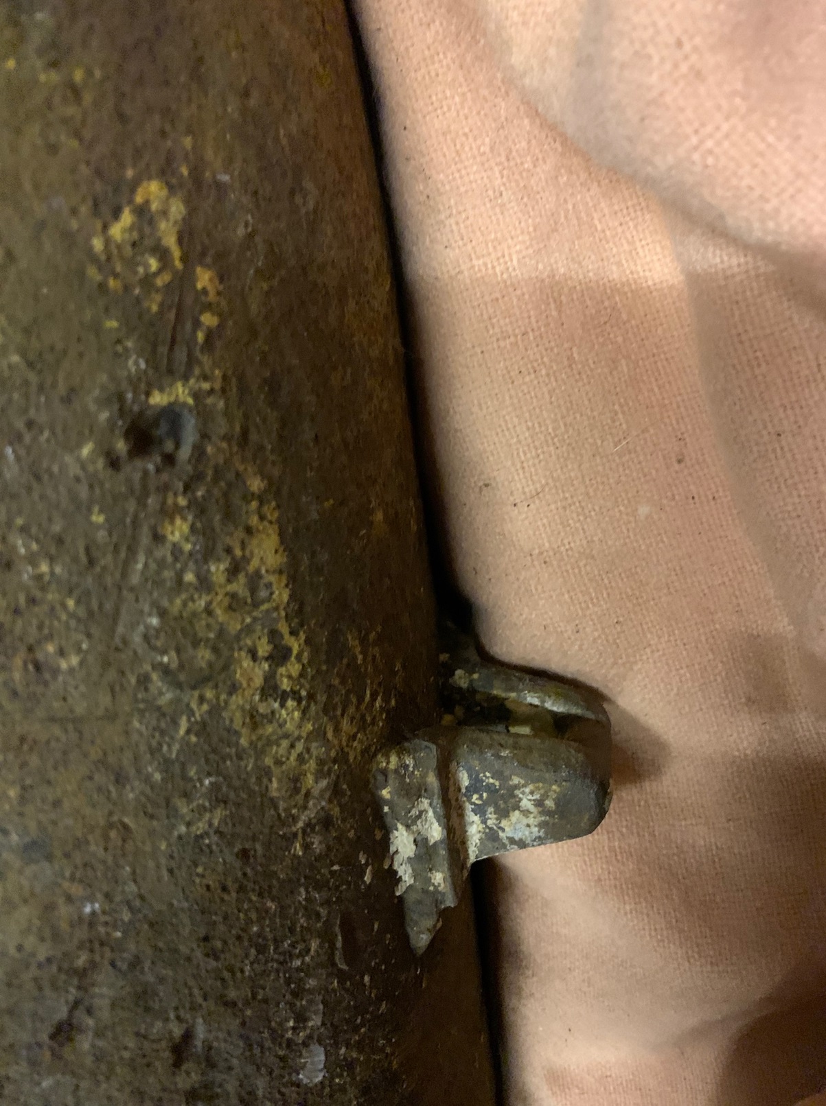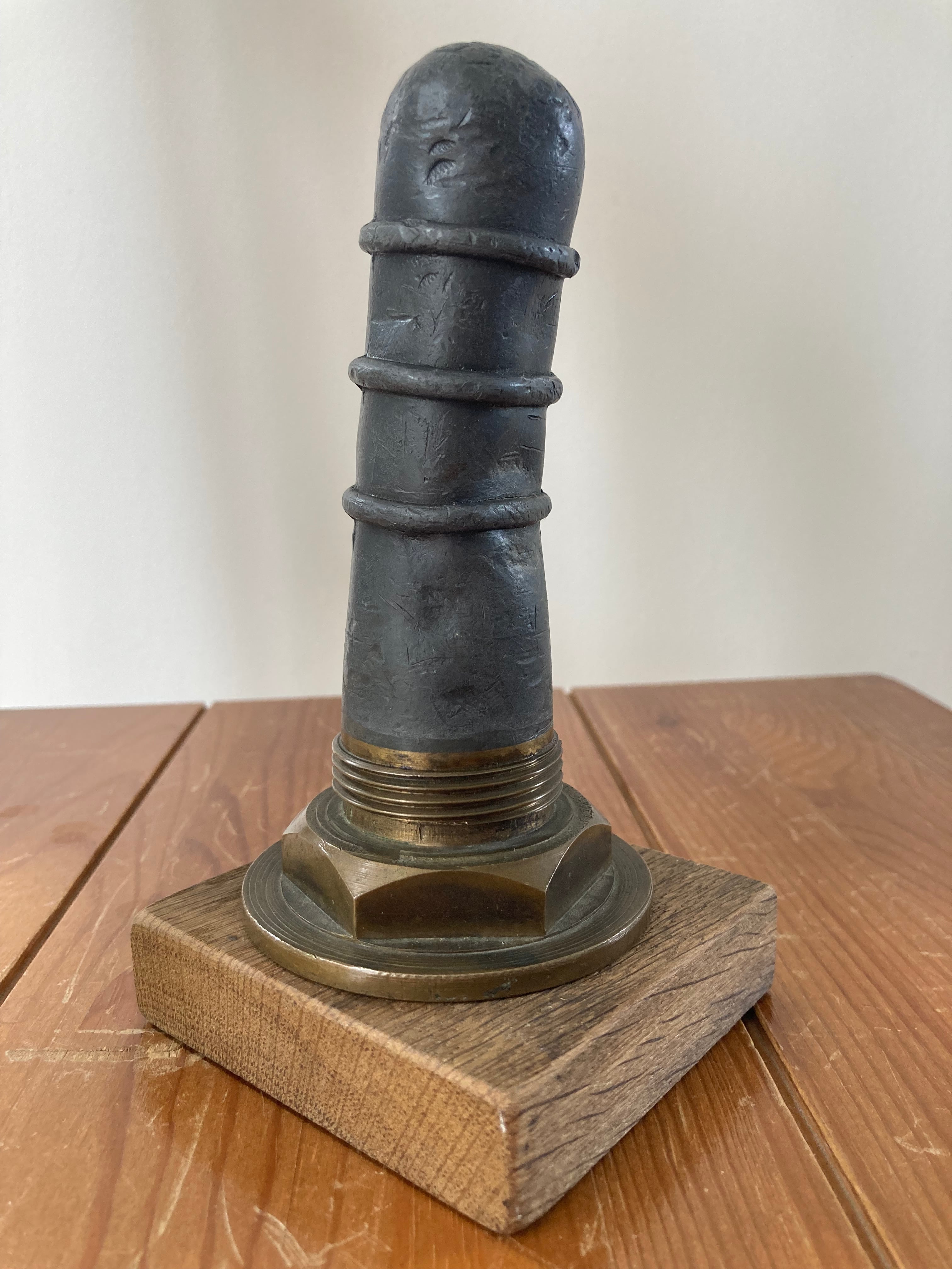 A nose weight off a British Incendiary bomb dated 8-43. Unrestored.