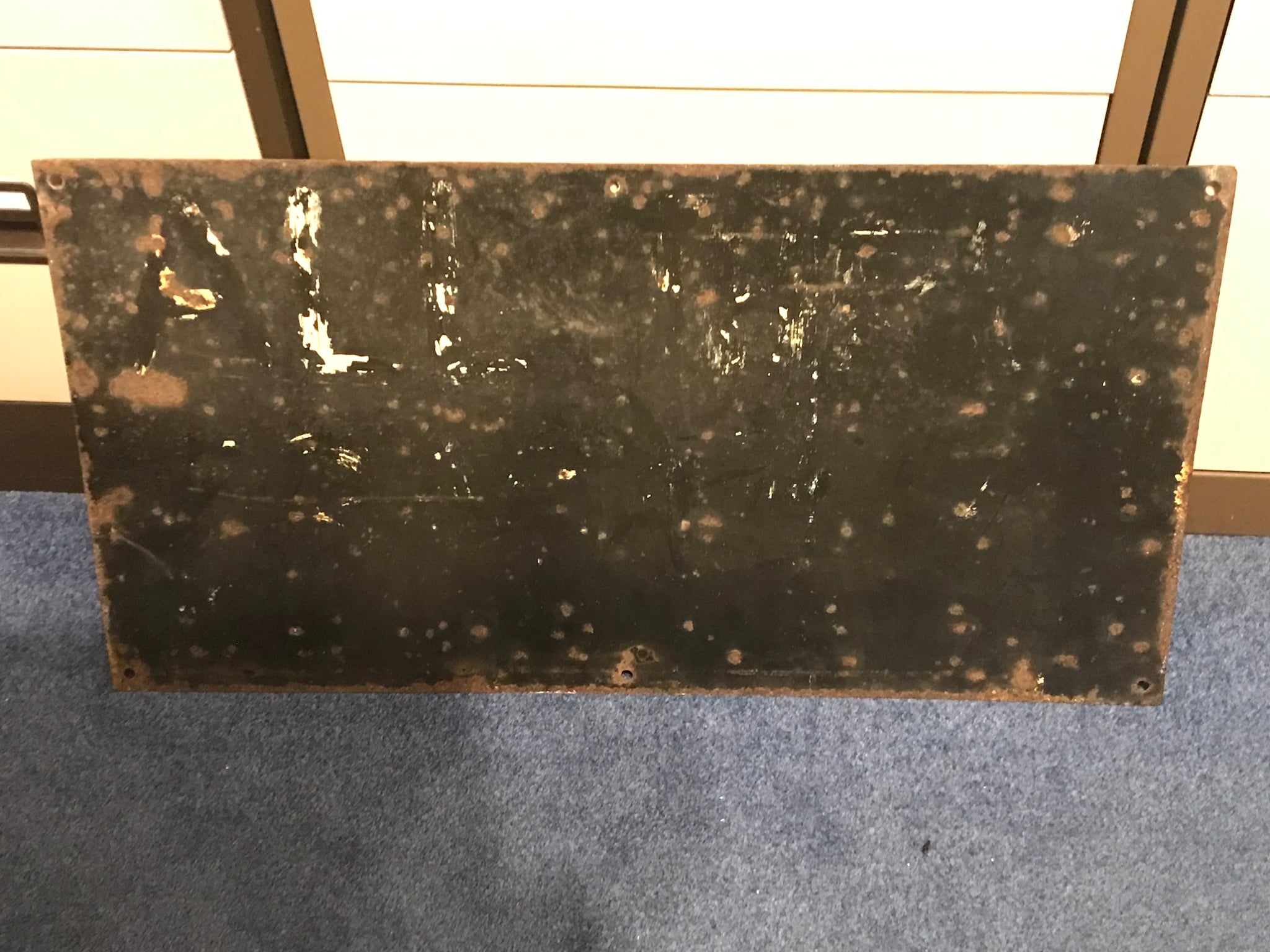 This genuine and rare sign 26" X 14" came from a police station in Kent and as Kent was heavily bombed, this sign will have seen plenty of action. The sign has been used on the film set of the channel 4 documentary 'Danger UXB', 'Call the Midwife' (Xmas special) and in the opening scene of 'Foyles War'. The front has a few areas of rust and wear and tear but considering it's age and action it is in really good condition. On the back you can just about read the words 'All Clear'.