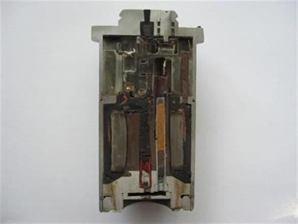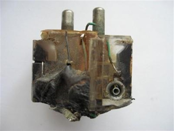 Usually Aluminum, but could be steel, in two parts the top part containing the charging pins is known as the SWITCH BLOCK, which also houses the TREMBLER SWITCHES. The bottom section containing the resistors and capacitors, that contain the electrical charge, at the very bottom is a screw thread its here that the GAINE screws into.